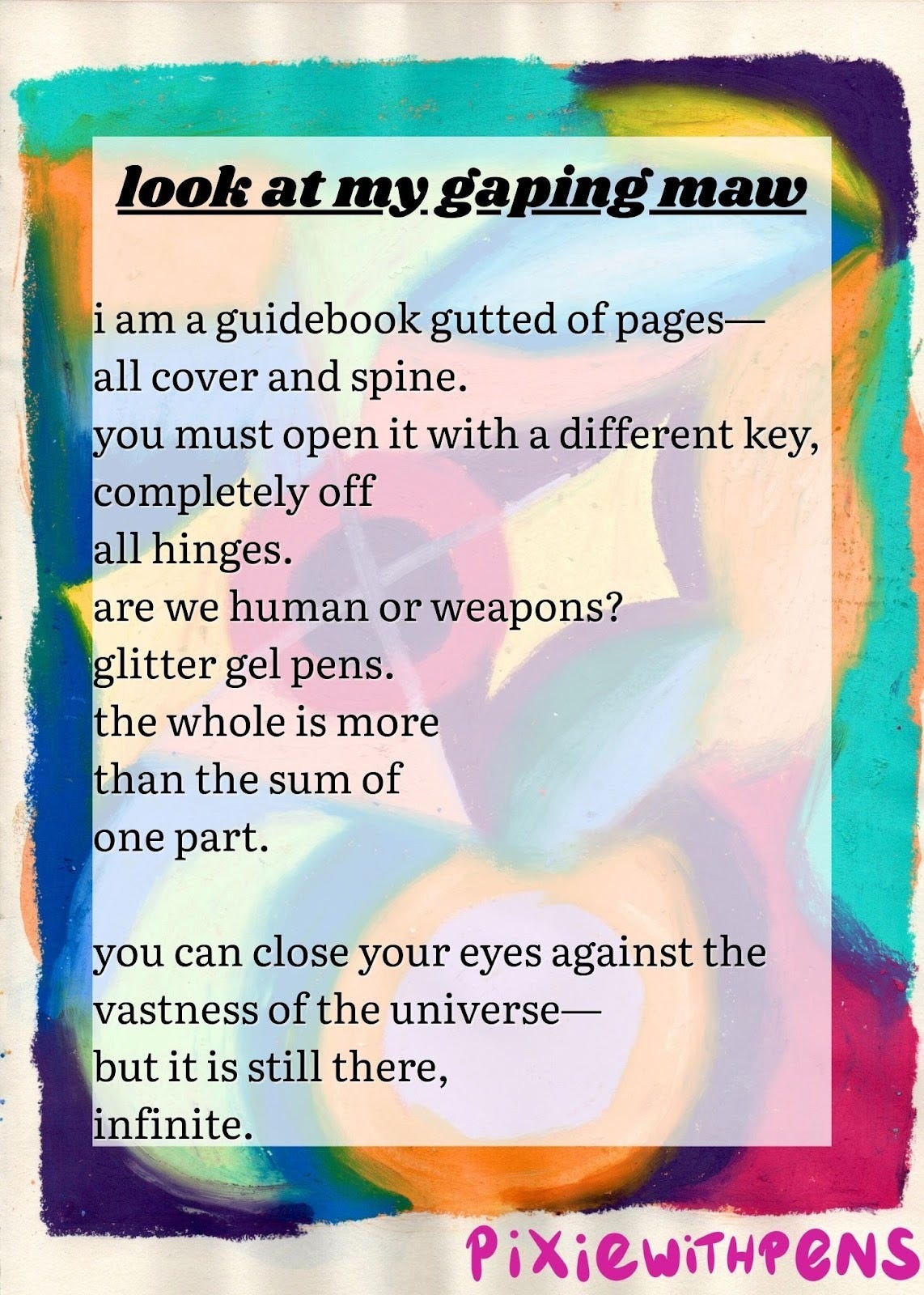 below are two of the poems that will be in the collection! their backgrounds are two of my experiments in abstract art, something new i started exploring in the past few months.